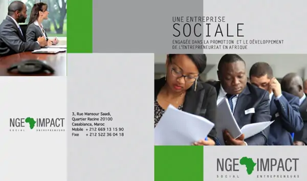 Dépliant institutionnel réalisé pour NGE-Impact pour le distribuer à son stand lors de la cinquième édition de Hub Africa qui s'est tenu le 4 et 5 mai 2017.